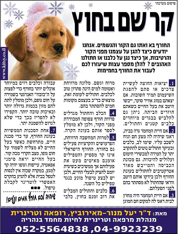 כיצד נגן על הכלב והחתול מפני החורף הקר והגשום ? כמה עצות שיעזרו לכם לעבור את החורף בחמימות Author: admin Category: חתולים, טיפול, כלבים, כללי